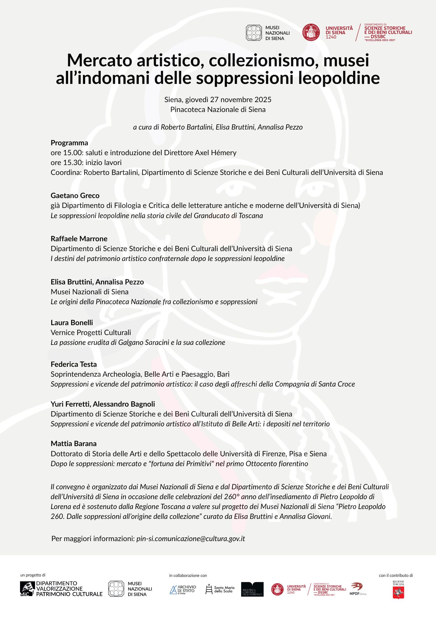 Il programma delle iniziative è disponibile, in aggiornamento, al link: https://www.pinacotecanazionalesiena.it/pietro-leopoldo-e-le-origini-della-pinacoteca-nazionale-di-siena/