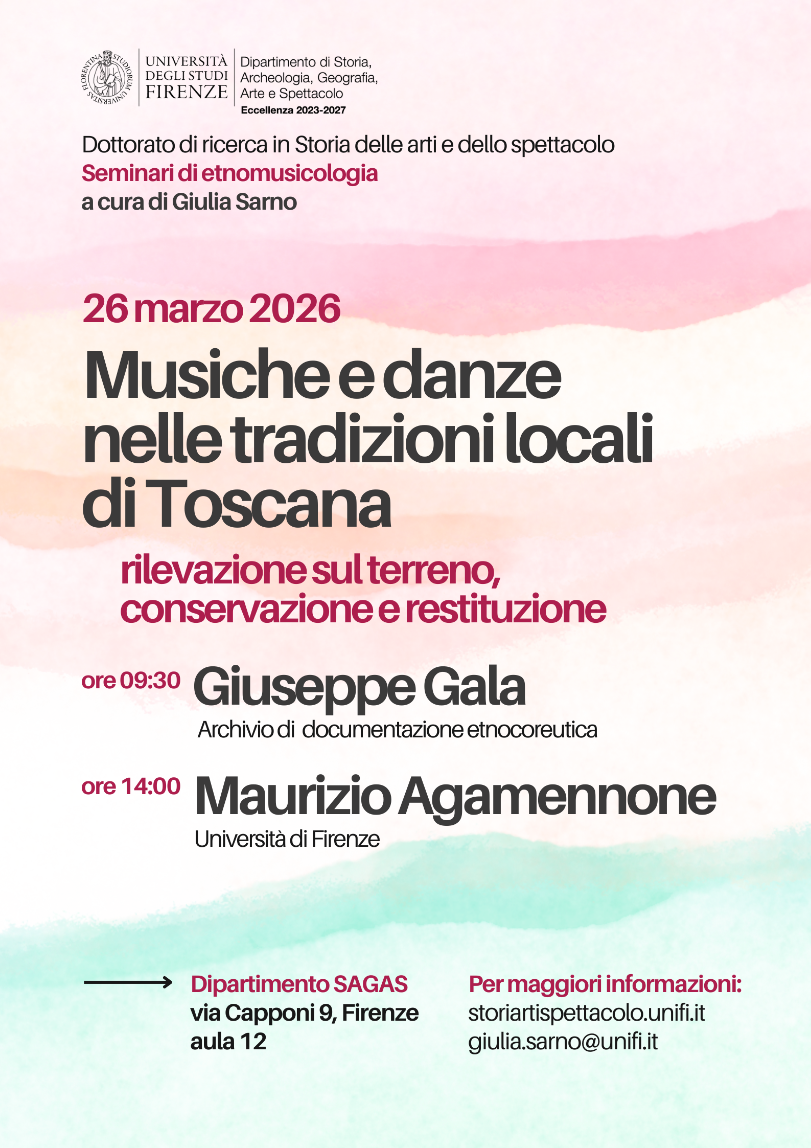 Università degli Studi di Firenze, Dipartimento SAGAS - via Capponi 9, Firenze - aula 12